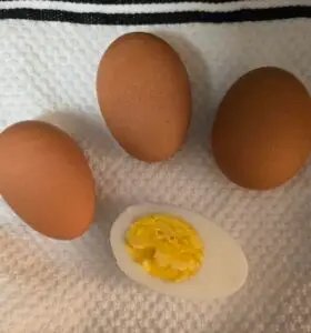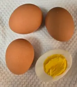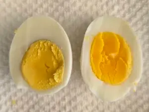 Set a timer for 14 minutes if you want your yolks to turn out like this. I think these are slightly over cooked but it’s your egg, your choice.