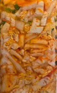 In the world of fermented vegetables, kimchi is a popular Korean dish. This version omits seafood and fish sauce, but they can be added if desired. The advantage of the vegan version is its much lower odor profile, while still maintaining its nutritional value and unique flavors. Kimchi is famous for having all five flavors in one dish: sweet, sour, salty, bitter, and umami. However, this vegan version lacks umami, so consider adding mushrooms for a more authentic taste.